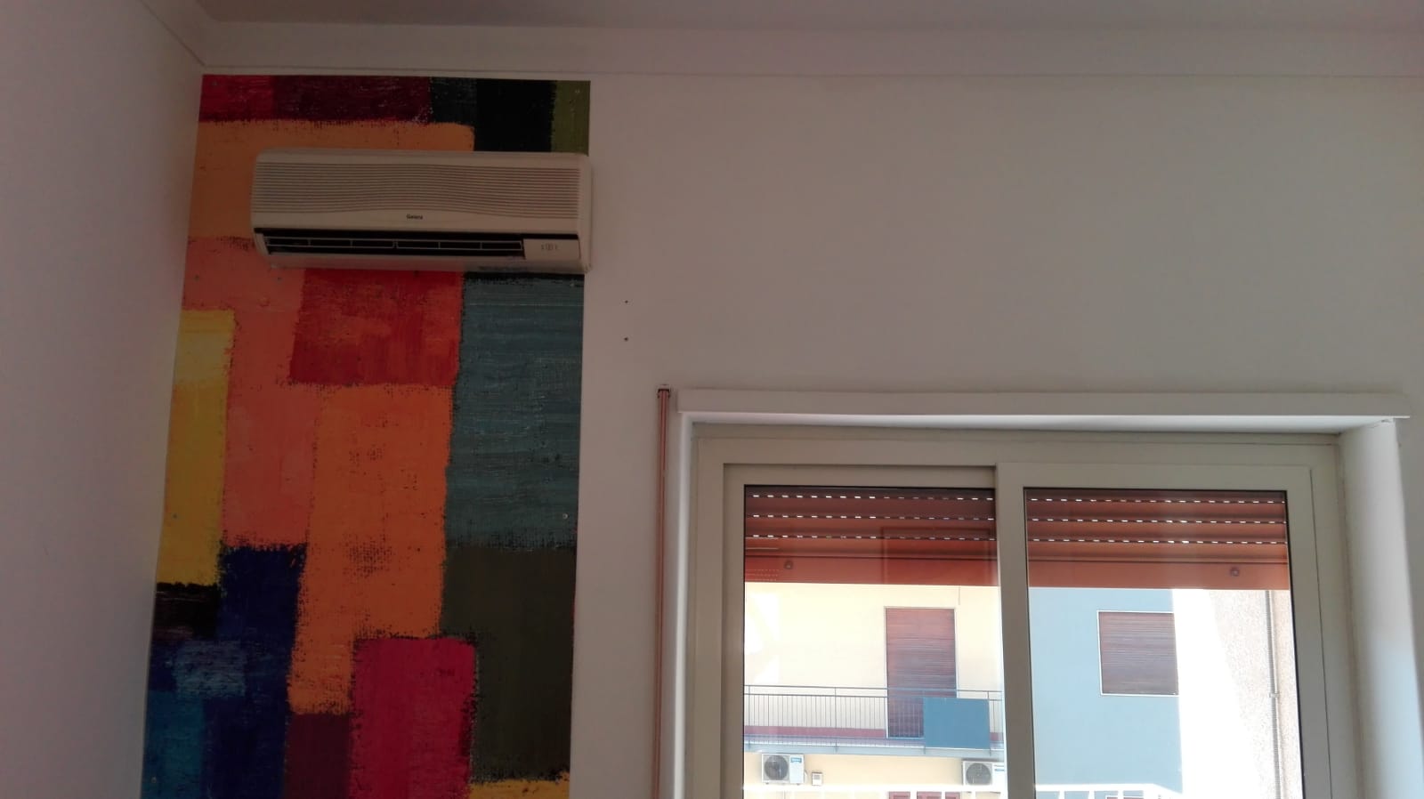 Condizionatore caldo/freddo (in tre delle quattro stanze), scrivania, sedia, letto una piazza e mezzo, cassettiera, materasso, armadio, comodino, una luce da tavolo ed una per il comodino, una cassettiera da scrivania, tende.